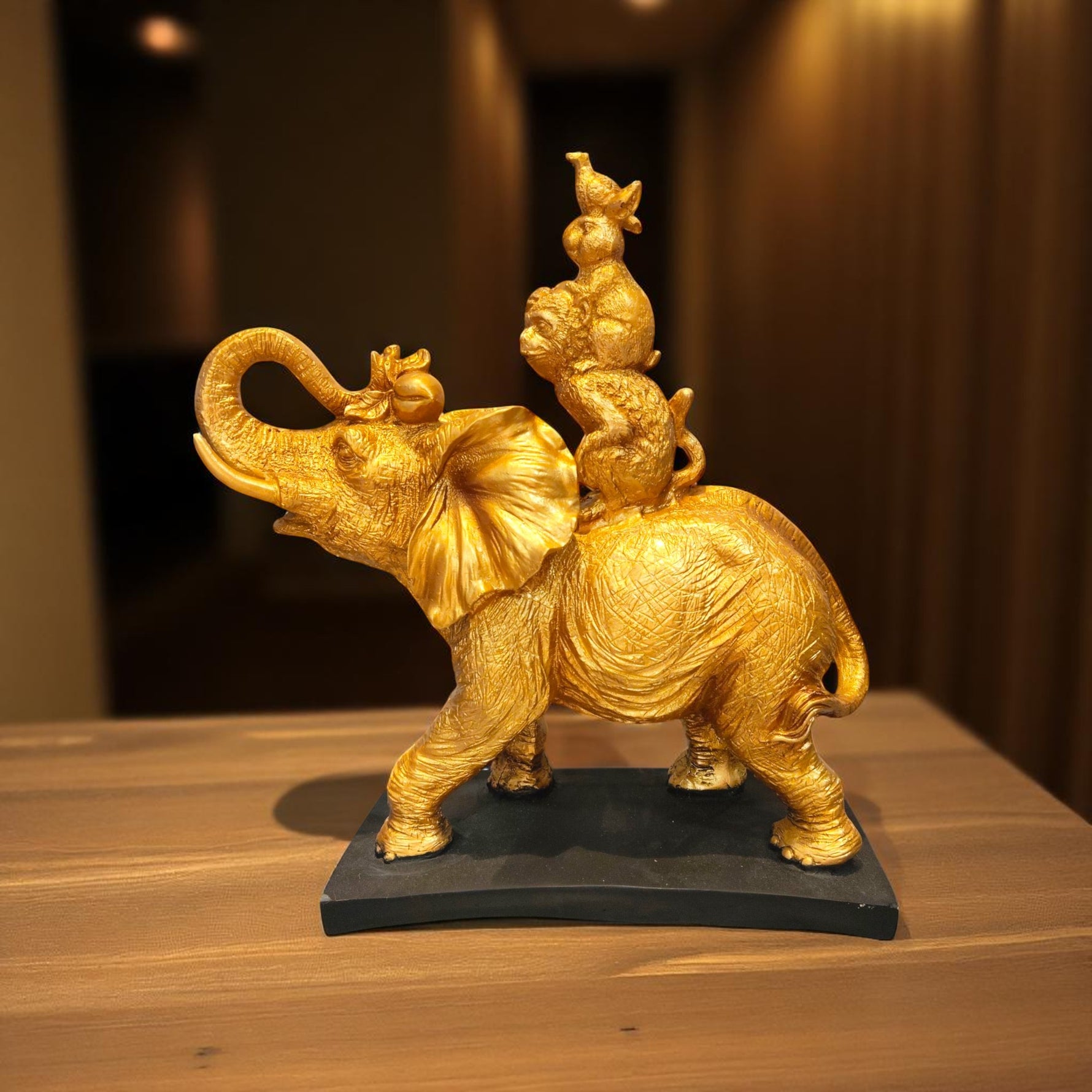 Gold textured finish aur elegant black base इसे बनाते हैं ek happy-luxury décor piece – perfect for home positivity aur gifting vibes ke लिए।